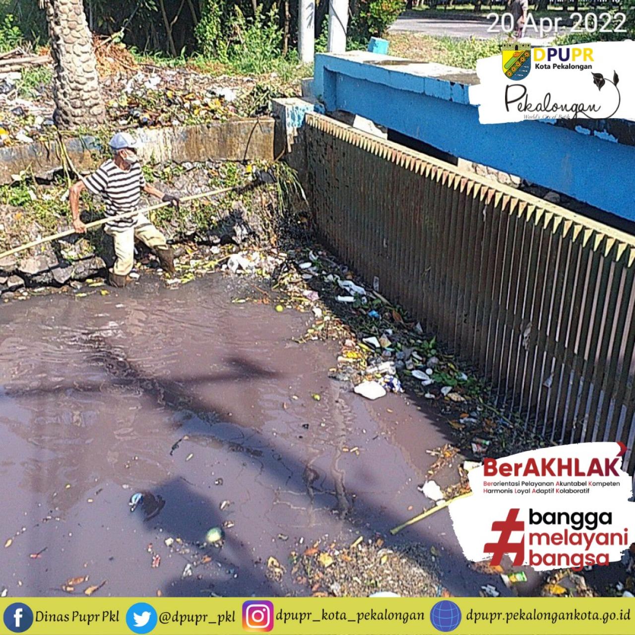 Rabu, 20 April 2022 DPUPR Mengerahkan Personil Bidang Sumber Daya Air untuk melaksanakan pembersihan di dua lokasi, yaitu saluran di Jl. Kh. Ahmad Dahlan yang berada di depan Unggul Jaya Kelurahan Tirto dan Saluran Jl. Wilis Kelurahan Podosugih. Kegiatan tersebut dilakukan agar kebersihan saluran tetap terjaga dan diharapkan masyarakat turut andil menjaga kebersihan lingkungan sekitar.