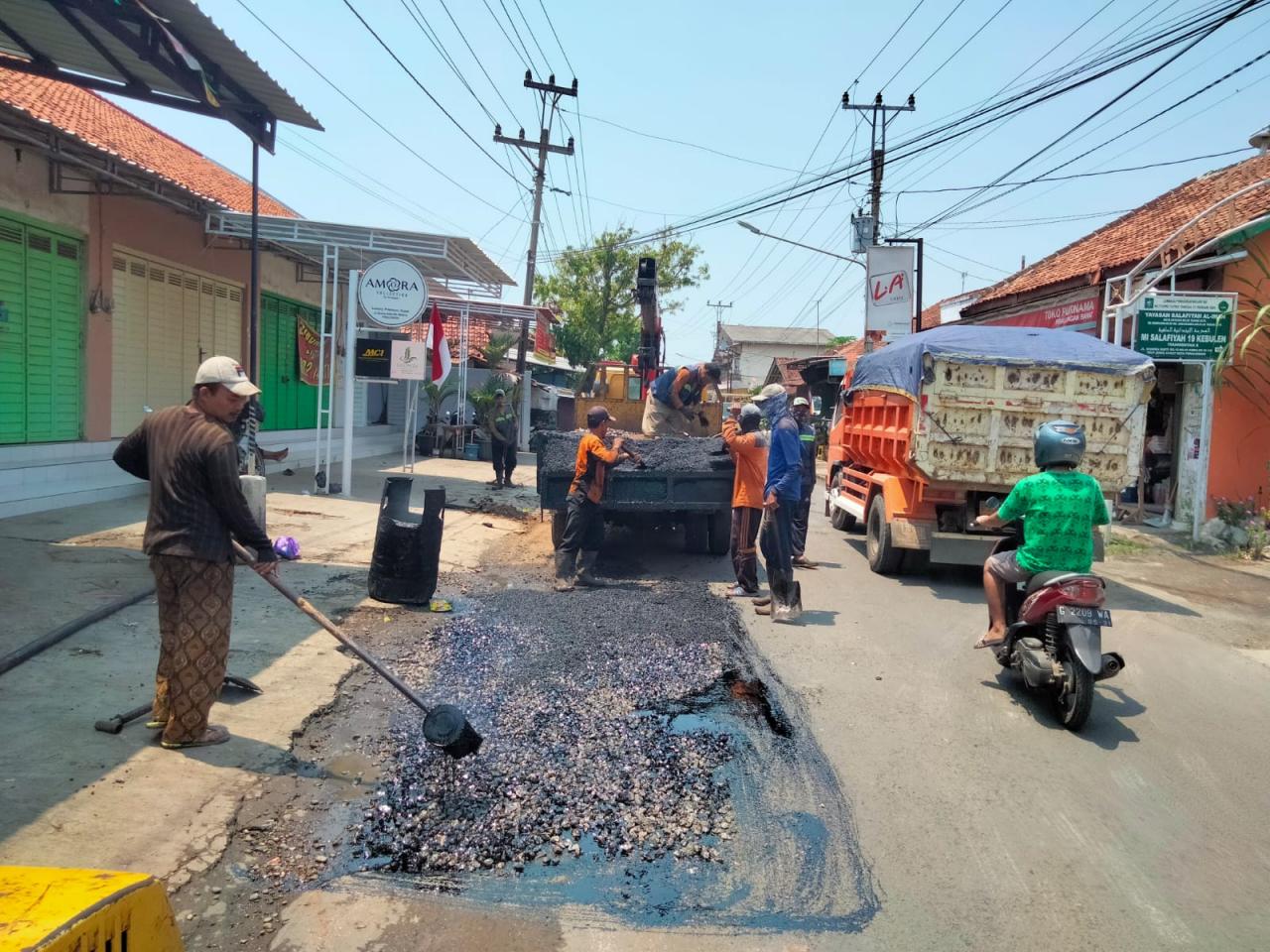 Selasa, 6 September 2022 DPUPR Kota Pekalongan mengerahkan personil dari Bidang Bina Marga untuk melaksanakan pemeliharaan rutin jalan/ perbaikan Jalan Dharma Bakti Kota Pekalongan